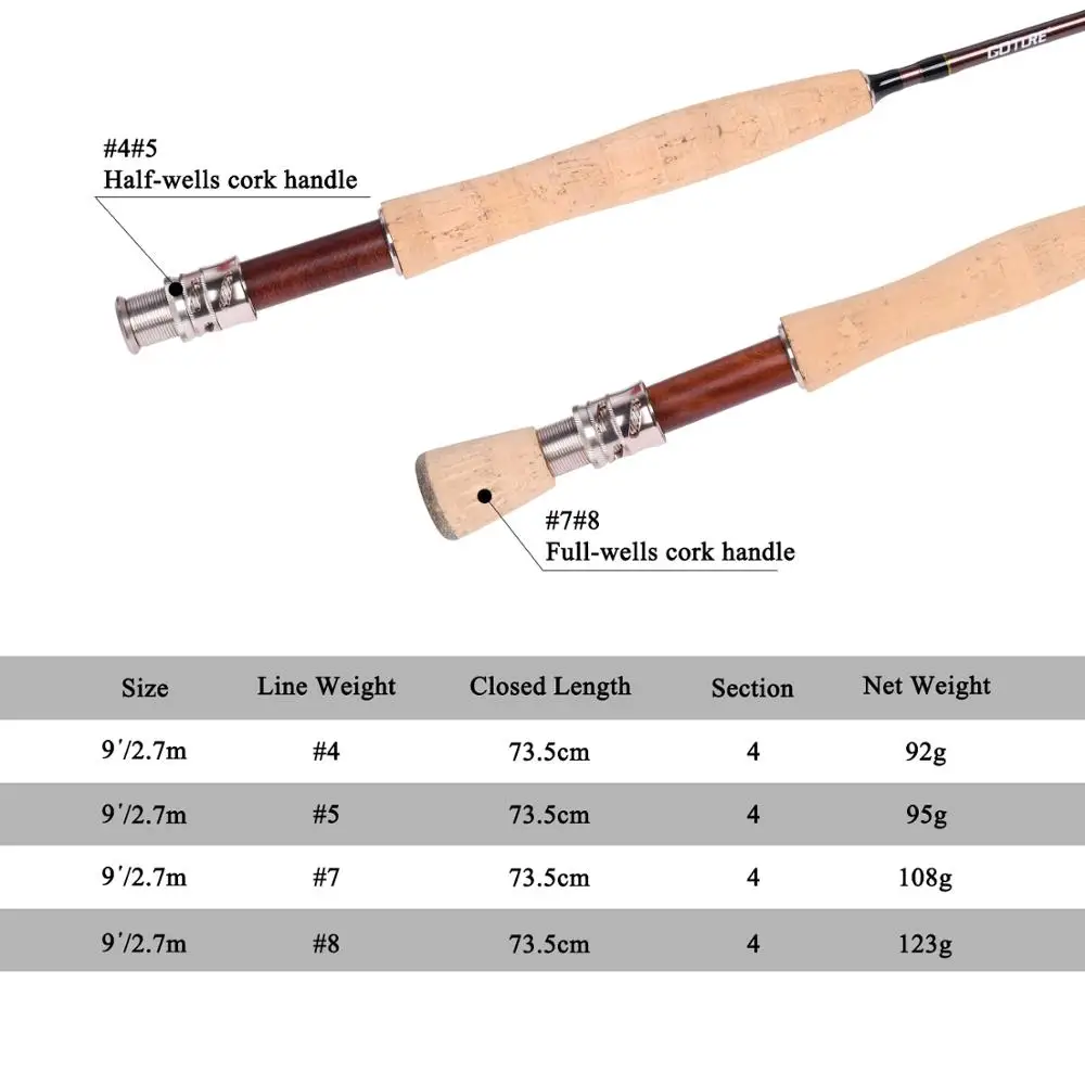 Sale Goture Bluewater Fly Fishing Rod 9ft 2.7M 30T Carbon Fiber Cork Handle 5wt/6wt/7wt/8wt M/MF Action Fly Rod Fishing TackleEarn 7% Cash Back, VALID UNTIL TOMORROW