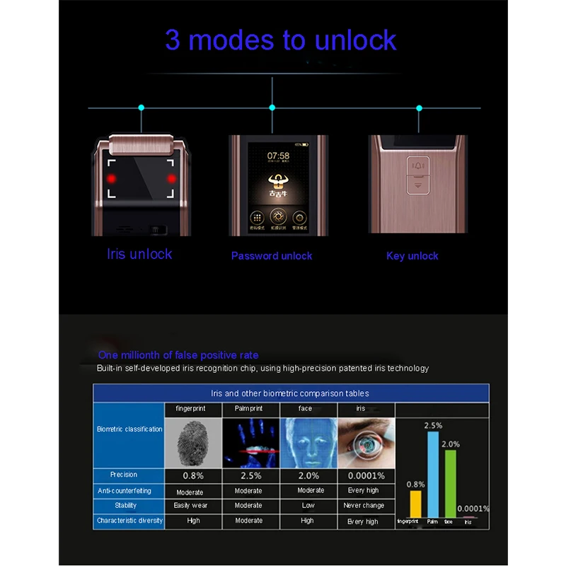 Buy Newest Top-Grade Iris Recognition Smart Lock Password Key Unlock Iris Accuracy Unlocking Door Bell Right Here and Right Now, Because before price is changed you will just pay for US $586.00, not in Reguler Price at US $1172.00. Yap! This is I mean you will Save 50%