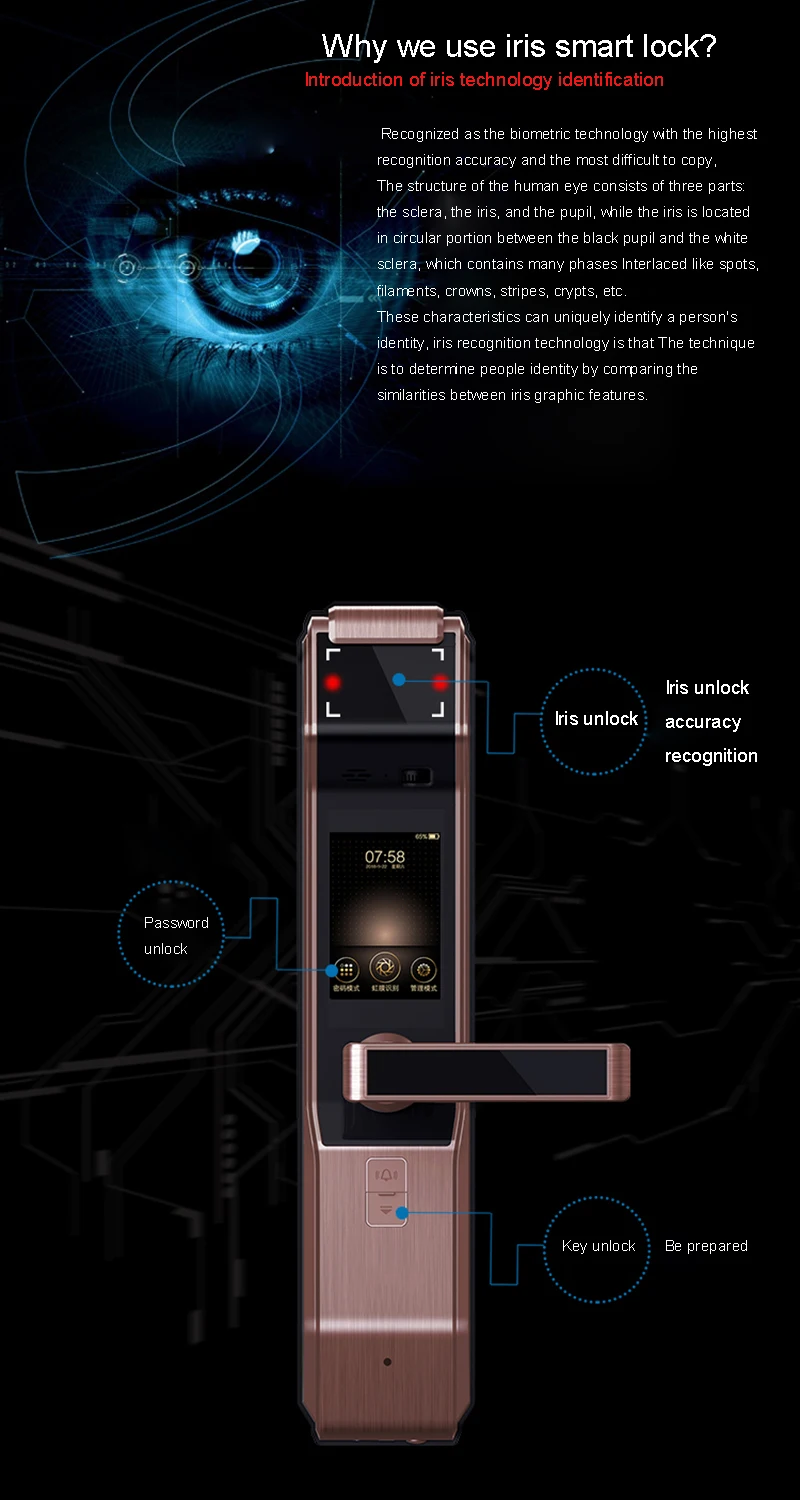 Related Product for Newest Top-Grade Iris Recognition Smart Lock Password Key Unlock Iris Accuracy Unlocking Door Bell