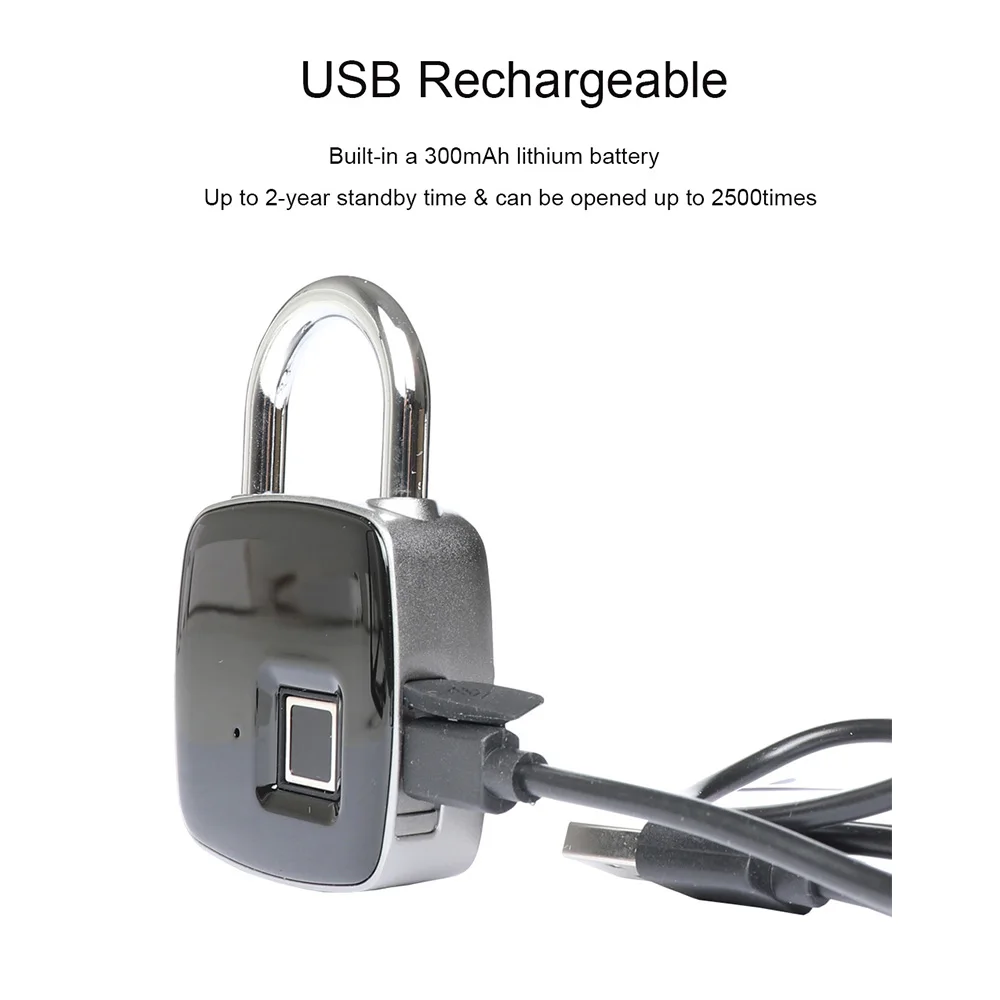 Fipilock Smart Fingerprint Lock Keyless USB Rechargeable Door Luggage Case Bag Lock Anti-Theft Security Fingerprint Padlock